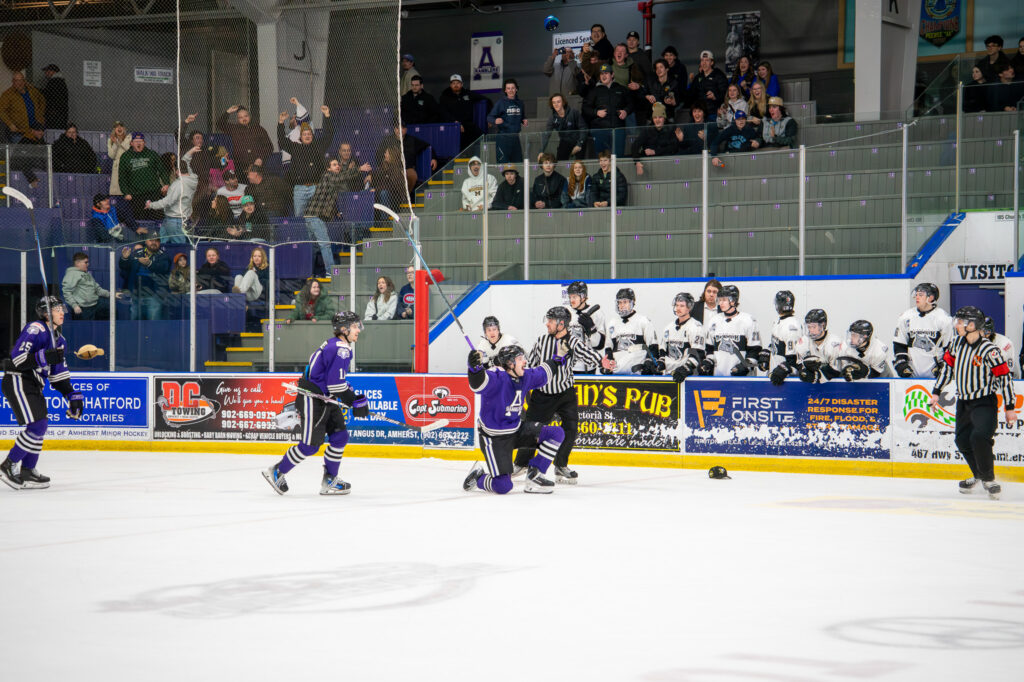 The third period saw both teams trading goals in a spirited display. Mark Corbett extended Amherst’s lead early at 5:16, with Elliot Wright earning the helper. Miramichi answered just 39 seconds later through Eustace, before Amherst’s Ty Peddigrew restored a two-goal edge at 8:31, with Gaudet collecting his third assist of the night. The Timberwolves weren’t finished, as Giguère and Campbell netted late goals to make it 5–5 heading to overtime.